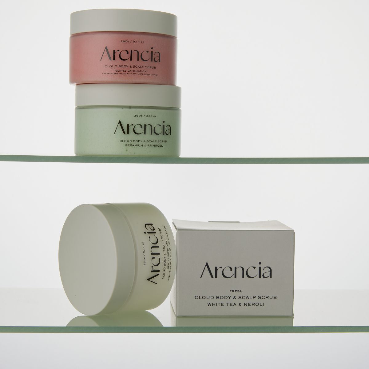 The Arencia Fresh Cloud Scrub White Tea & Neroli is a luxurious, whipped exfoliating scrub that transforms your shower into a spa ritual. Formulated with White Tea extract, known for its antioxidant and anti-aging properties, and Neroli extract, prized for its soothing and brightening benefits, this scrub gently buffs away dull, dead skin while nourishing and hydrating for a silky-smooth finish.