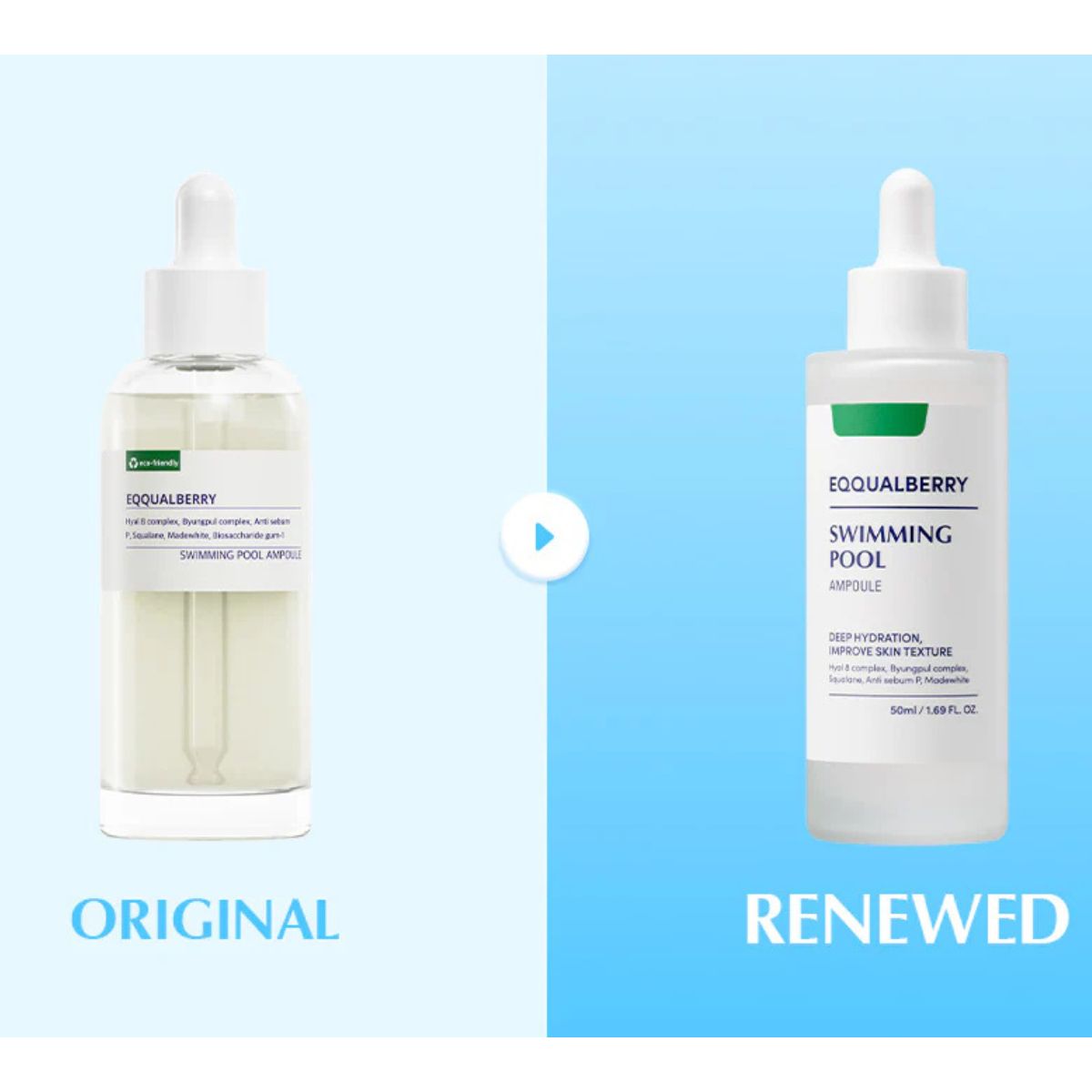 The Eqqualberry Swimming Pool Ampoule delivers an instant burst of hydration and clarity to tired, dehydrated, or sensitive skin. Inspired by the clean, cooling sensation of pool water, this ampoule is enriched with Hyaluronic Acid, Panthenol, and Centella Asiatica Extract to replenish moisture, calm irritation, and restore balance to the skin barrier.
