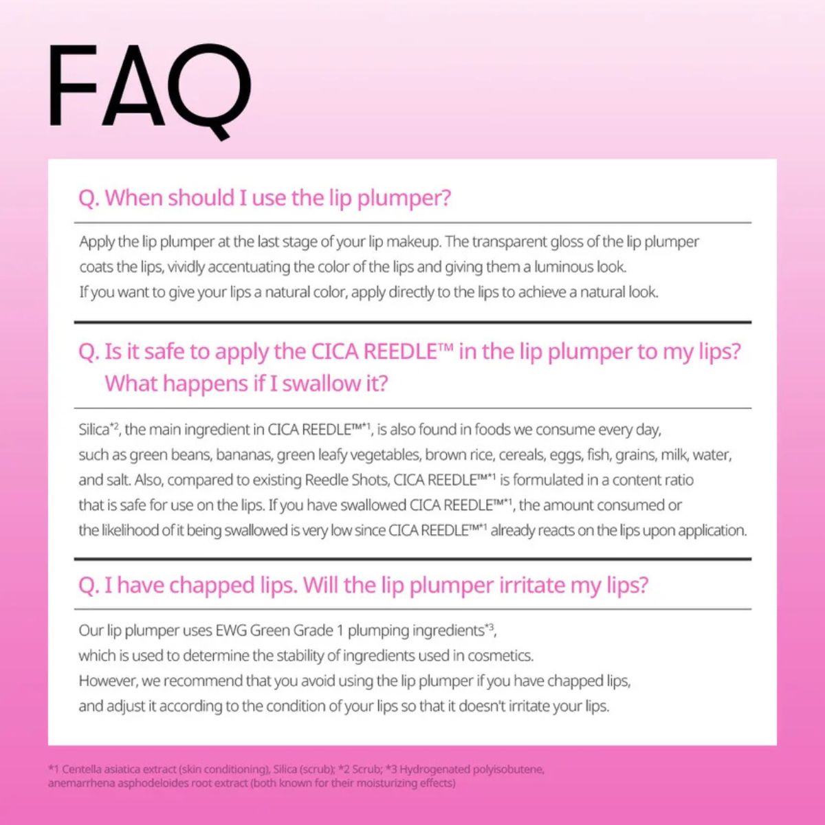 The VT Reedle Shot Lip Plumper Beginner is designed for those new to lip-plumping care, offering a gentle yet effective way to achieve fuller-looking, hydrated lips. Inspired by VT’s signature microneedle technology, this lip plumper creates a subtle tingling sensation that enhances natural volume and smoothness without irritation.