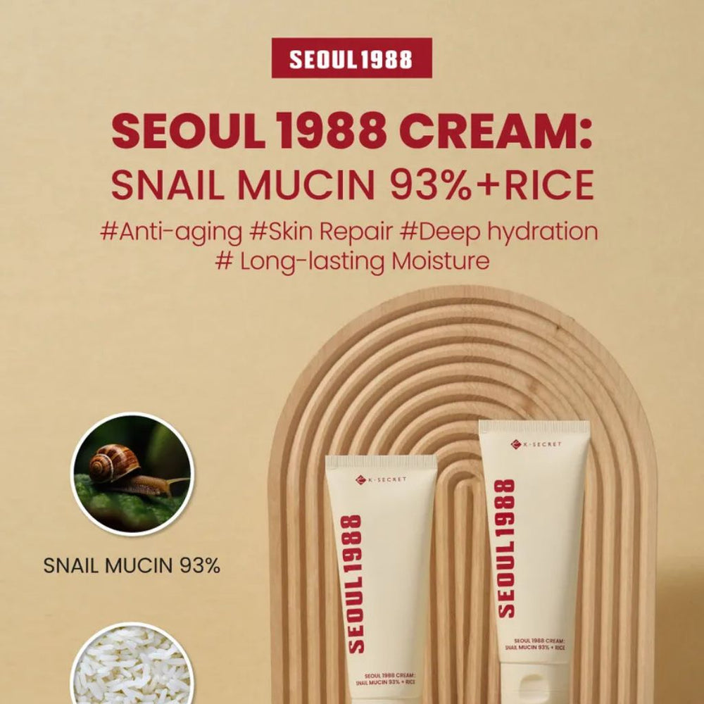 Seoul 1988 Cream – with 93% Snail Mucin + Rice for intense hydration and barrier repair